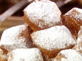 Roll the dough out to about 1/4-inch thickness and cut into 1-inch squares. Deep-fry, flipping constantly, until they become a golden color. After beignets are fried, drain them for a few seconds on paper towels, and then toss them into the bag of confectioners' sugar. Hold bag closed and shake to coat evenly.