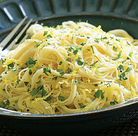 Add the lemon juice to the sauce, along with the drained pasta and half of the grated lemon zest. Toss the pasta in the warm sauce to coat thoroughly. Season to taste with salt and pepper. Serve in warmed pasta bowls. Sprinkle with the remaining lemon zest and the parsley.