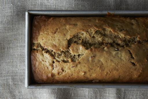 HOW: Dice one banana and sauté it in brown sugar until it’s caramelized. Mash the other two bananas, then beat them with eggs, sugar, brown butter, vanilla, and bourbon. Add this to your dry ingredient mixture along with some buttermilk, then fold in toasted pecans and the caramelized banana pieces.