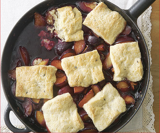 The tender biscuits that top this cobbler come together in a food processor in minutes. Use a mild honey in the filling so it doesn’t overpower the plums.