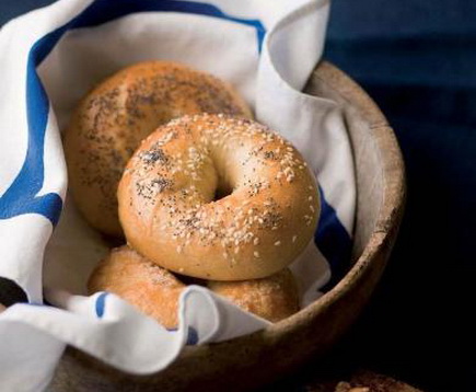 Top your bagels with any combination of the following garnishes: poppy seeds, sesame seeds, coarse salt, or rehydrated dried onions or garlic. (Soak dried onions or garlic in water to cover for at least 1 hour before applying.) The toppings will stick even better if you first brush the top of each bagel with an egg white wash made by whisking 1 egg white with 1 tablespoon (0.5 oz / 14 g) of water. If using coarse salt as a garnish, remember that a little goes a long way.