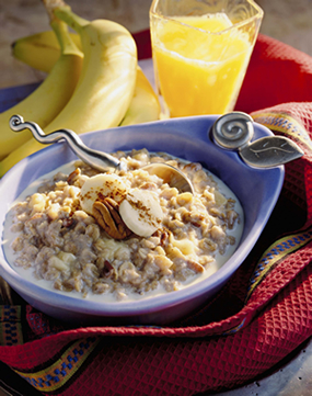 Remove oatmeal from heat. Stir in mashed bananas and pecans. Spoon oatmeal into six cereal bowls. Top with yogurt, sliced bananas and pecan halves, if desired.