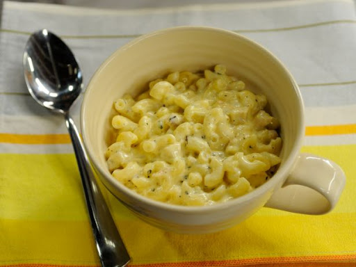 To the same mug, add the heavy cream, Cheddar-Monterey Jack cheese, pepper-Jack, a pinch of salt and a grind of black pepper. Microwave on high, checking and stirring every 25 to 30 seconds, until the cheese is melted and a sauce forms, up to 90 seconds. Serve warm and get back to binge-watching your favorite TV show.