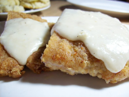 Pour oil into a 12" skillet; heat to 360 degrees (do not use a nonstick skillet). Fry steaks 3-4 minutes. Turn and fry 2-3 minutes or until golden. Remove steak to wire rack in a jellyroll pan. Keep steaks warm in a 225 degree oven. Carefully drain hot oil, reserving cooked bits and 1 tablespoon of dripping in skillet.