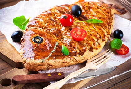 Cuando esté hecho, sacamos y dejamos enfriar. Mientras, podemos proceder a la decoración, con aceitunas, pimiento o tomates cherry. ¡Delicioso!