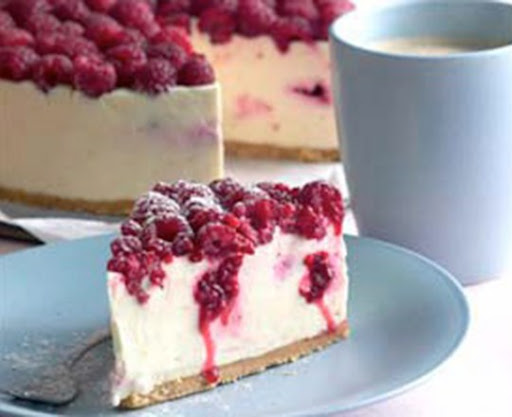 Pour the filling into the prepared base and refrigerate 3 hours or until set. Garnish with raspberries and dust with icing sugar.