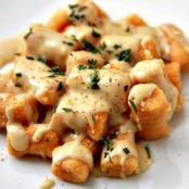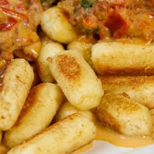 This soup is thick and hearty. If you like a less thick soup, simply add more liquid (either milk or chicken broth). I'd suggest adding it at the end with the chicken and spinach, after the soup has thickened. Vacuum-sealed packages of gnocchi are usually in the pasta aisle of the grocery store. I've also seen frozen gnocchi, too, so check both places if you can't find it.