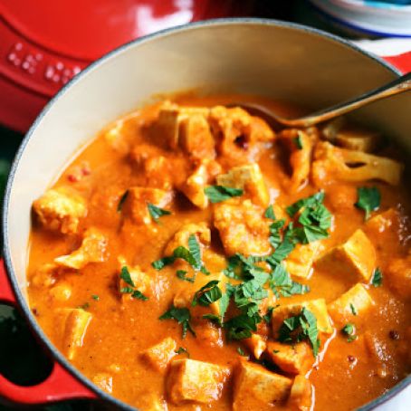 2.In a large pot, heat oil over medium heat, add spice mix, tomatoes, carrots, onion, garlic, and coconut. Sauté for 10 minutes. Add water; bring to a boil, reduce to medium, cover, and cook for 20 minutes, until vegetables are very tender. Transfer to a blender or food processor (or use an immersion/stick blender); purée until smooth. Add back to pot along with tofu, cauliflower, pink peppercorns, and lemon juice. Bring to a boil, reduce to medium, cover, and cook until cauliflower is extremely tender (about 15 minutes). Season to taste with additional salt, if required (it needs a surprisingly large amount).