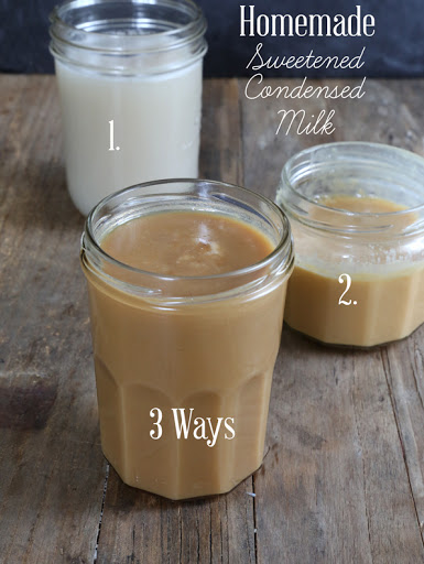 Whole Sweetened Condensed Milk. Only the whole milk variety will begin to develop curds that accumulate on the top of the liquid. Skim those off and discard them. Continue to simmer the mixture, stirring occasionally, until it is reduced by about 5/8 (more than half, less than three-quarters) and has begun to thicken (about 1 hour). Skim off any remaining curds, and transfer to a heat-safe container until cooled completely. Cover tightly and store in the refrigerator and use within 2 to 4 weeks.