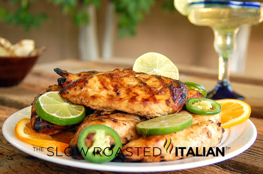 degree F. Pour off 1/2 of marinade, add the chicken and remaining