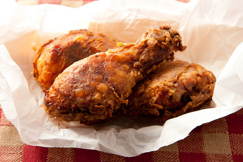 Special equipment: Although not necessary, a candy/fat thermometer is handy for this recipe. Game plan: If you cook the chicken just before leaving on your picnic, transport it warm, uncovered, in a basket lined with paper towels and foil. If you make it a day ahead, let it cool, then refrigerate it overnight. Pack the cold chicken in a covered plastic container lined with parchment paper.