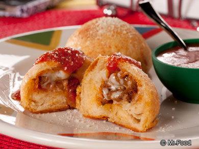 Bake 10 to 12 minutes, or until golden. Serve warm with remaining pizza sauce.