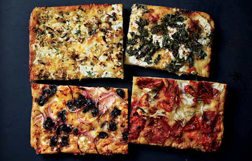 Place a rack in the lower third of the oven and preheat to 525 degrees. Once the dough as risen on the baking sheet, top with 12 oz. fresh mozzarella, grated and dot pie with tomato pizza sauce. Bake pie until golden brown and crisp on the bottom and sides, about 20-30 minutes.