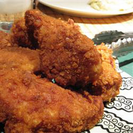 Whoa, there Nellie! This is GREAT!!!! Had CFC from the local Chili's and looked for a recipe on this website and honestly...it's just as good. You do need to add a little more seasoning to the flour/crax mixture though. I added another couple of tblspoons of potato flakes, tripled the seasoning salt, added garlic powder and a tad bit of poultry seasoning. Have made this twice in three nights (per boyfriend's request!). First time, really pounded down the chicken - cooked very quickly and was really good. Didn't pound chicken quite so thin second time and it was more juicy, although definitely need to turn it over several times while cooking. Play around with the spices....don't leave the potato flakes, crackers or flour out...it makes a very tasty, crunchy crust! Will add to my "favorites!"