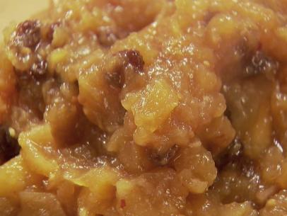 Combine the apples, onion, ginger, orange juice, vinegar, brown sugar, mustard seeds, pepper flakes and salt and in a large saucepan. Bring the mixture to a boil over medium-high heat, stirring occasionally. Reduce the heat to simmer and continue cooking, stirring occasionally, for 50 minutes to 1 hour, until most of the liquid has evaporated. Take off the heat and add the raisins.