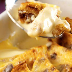 Layer bread, raisins and custard mixture in prepared baking dish, ending with custard. Let stand at least 30 minutes.