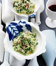 Add enough hot stock to just cover the rice and cook over moderate heat, stirring, until the stock has been absorbed. Add more stock to cover the rice. Continue cooking and stirring, adding more stock as it is absorbed, until the rice is al dente and suspended in a creamy sauce, 25 minutes. Add the pea puree, the remaining peas and the bacon and cook, stirring, until hot. Remove the risotto from the heat and stir in the butter, reserved bacon fat, cheese and lemon juice. Season with salt and pepper. Garnish with the pea shoots and serve.