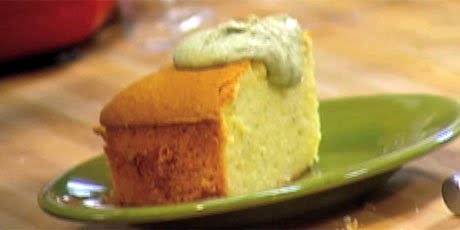 In a separate bowl whisk together the flour, cornmeal, baking powder and soda and salt. Stir the dry into the wet ingredients, just until combined then pour the batter into the prepared pan. Bake for 1 hour and 20 minutes. Cool and serve with basil whipped cream or another favourite cake topping.