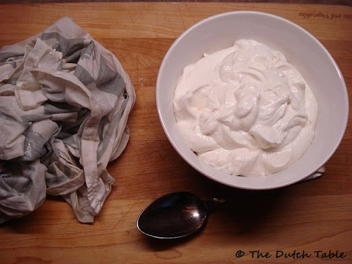 Scrape the kwark out of the towel and fluff up with a fork. If it’s too dry, add a tablespoon or two of milk. If it’s still too wet, continue to drain for a little bit longer. You are looking for a thicker yoghurt consistency.