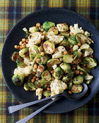 Jerk-Spiced Brussels Sprouts, Cauliflower and Chickpeas
