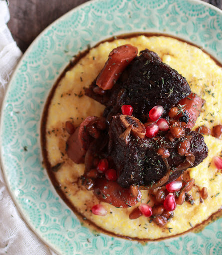 Slow Cooker Pomegranate Short Ribs with Creamy Polenta