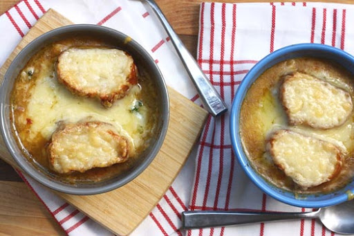 White Bean Kale Soup, French Onion Soup Style