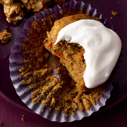 4. Whisk cream cheese, reserved juice and confectioners' sugar until smooth. Spread 1/2 Tbsp. glaze on each cupcake and serve. Refrigerate leftovers.