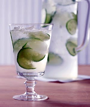 1.In a pitcher, combine the club soda, lime juice, and cucumber. Serve over ice.
