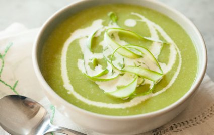 Ladle the soup into bowls and drizzle the top of each with a little cream, if using.
