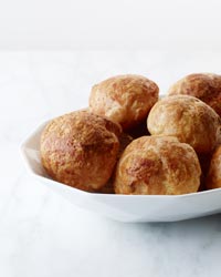 Transfer the dough to a piping bag fitted with a 1/2-inch plain tip. Pipe 1 1/2-inch mounds onto the baking sheets, leaving 1 inch between them. Proceed with Step 4 of one of the following three choux recipes: Chouquettes, Gougères, or Cream Puffs.