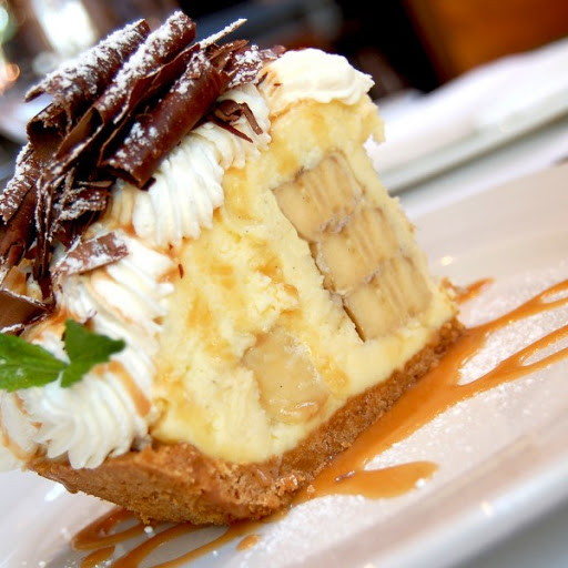 Banana Cream Pie With Caramel Drizzles And Chocolate Sauce
