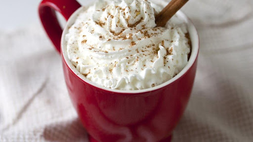 Pour into 2 large mugs. Garnish each with whipped cream, dash pumpkin pie spice and a cinnamon stick.