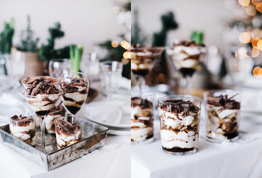 3. Powder some cocoa on top and grate a generous amount of chocolate over each serving. Store in fridge for a couple hours before serving to make sure the ladyfingers soak up the syrup.