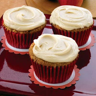 I topped these with spiced cream cheese frosting. Make typical cream cheese frosting and add in a mix of cinnamon, nutmeg, and cloves (a total of 1 tablespoon).