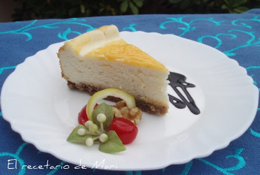 -Calentamos ligeramente unas cucharadas de mermelada de limón y las vertemos sobre el fondo de nueces. Yo el fondo lo cubrí con la crema de limón. Reservamos.