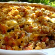 This is the casserole I grew up on, and is still a family favorite. Although I replaced the Velveeta with a good cheddar many years ago, my sister admits she still adds "at least some" Velveeta. I'll issue a guilt-free pass on that one.