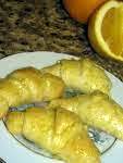 5. Roll up wedges, starting at wide end, to form cresent shape. Place rolls, point sides down in 3 rows in a 13 x 9-inch baking dish coated with cooking spray. Cover and let rise in warm place, 1 hr or until doubled.