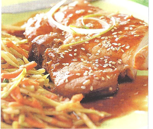 In the same skillet, cook the coleslaw mix, carrot and onions over medium heat until crisp-tender. Serve with pork chops; drizzle with reserved sauce and sprinkle with sesame seeds.