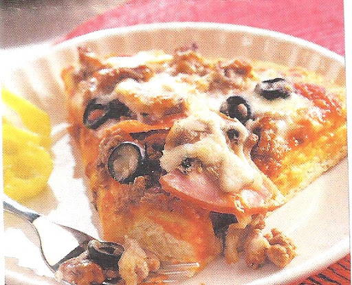 Spread spaghetti sauce over crust to within 1 in. of edges. Top with beef mixture, pepperoni, Canadian bacon, mushrooms, olives and cheese.