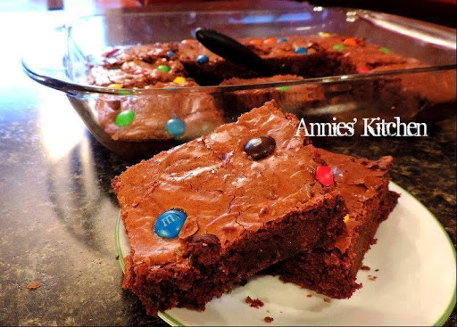 Preheat oven to 350 degrees. Melt butter and 12 oz bag of chocolate chips in the microwave. In the same bowl, blend in the sugar and vanilla. Then add eggs, blending fully one at a time. Add flour and salt and beat until air bubbles form in the batter. Stir in 1/2 cup of M&M's and the remaining 1/2 cup chocolate chips. Pour into a greased 9 X 13-inch pan. Sprinkle remaining M&M's on top. Bake for 35 minutes or until brownies are done.