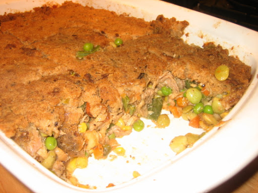 Stir in the chicken, peas and corn. Cover and cook until the chicken is white throughout, about 1 hour and 15 minutes. Discard the herb bundle. Season the stew with pepper.