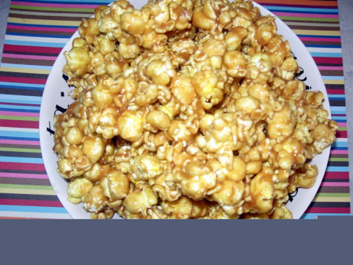 Place half of popcorn and, if desired, nuts in each of 2 lightly greased shallow roasting pans. Pour sugar mixture evenly over popcorn; stir well with a lightly greased spatula.