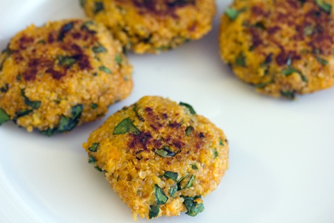 Combine all ingredients together in a large bowl, including the flax mixture and the 1.5 cups cooked quinoa. Stir well until the mixture comes together. Don't forget the flour because it helps bind the patties.