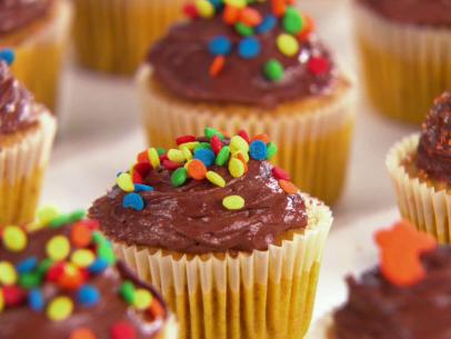 Mini Pumpkin Cupcakes with Chocolate Frosting (Giada at Home)