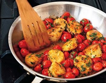 Sauted Scallops with Cherry Tomatoes, Green Onions, and Parsley