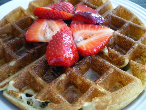 P.S. When serving the waffles with fresh sliced strawberries, try adding a little Balsamic Vinegar to the sugared strawberries. It sharpens their flavor significantly! If you can taste the vinegar, you’ve added too much. A small amount does the trick.