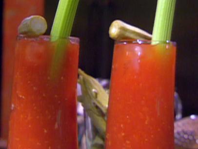 Fill 6 large (16-ounces) tumblers with ice, divide the tomato juice mix among the glasses, and divide the vodka evenly among the glasses. Garnish with the pickled okra and celery stalks and serve.