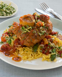 In a large skillet, bring the stock to a boil with a generous pinch of salt. Remove from the heat, add the saffron and let steep for 5 minutes. Return the chicken stock just to a boil. Add the orzo and cook over moderate heat, stirring occasionally, until the orzo is al dente and the stock has been absorbed, about 8 minutes. Remove from the heat, stir in the oil, season with salt and pepper and serve.