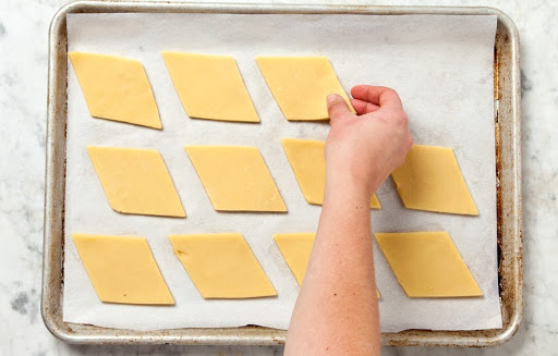 Bake cookies, rotating baking sheets halfway through, until edges are golden, 12–16 minutes, depending on size. Transfer to wire racks and let cool. Repeat with scraps and remaining dough.