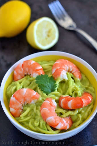 Zucchini Pasta with Creamy Avocado Sauce and Shrimp